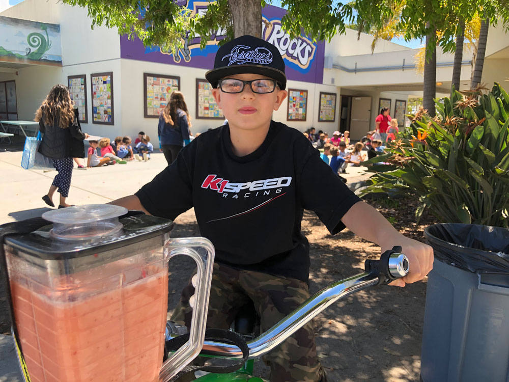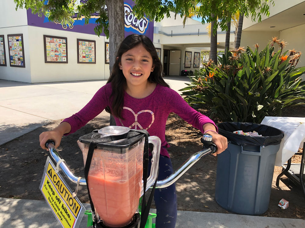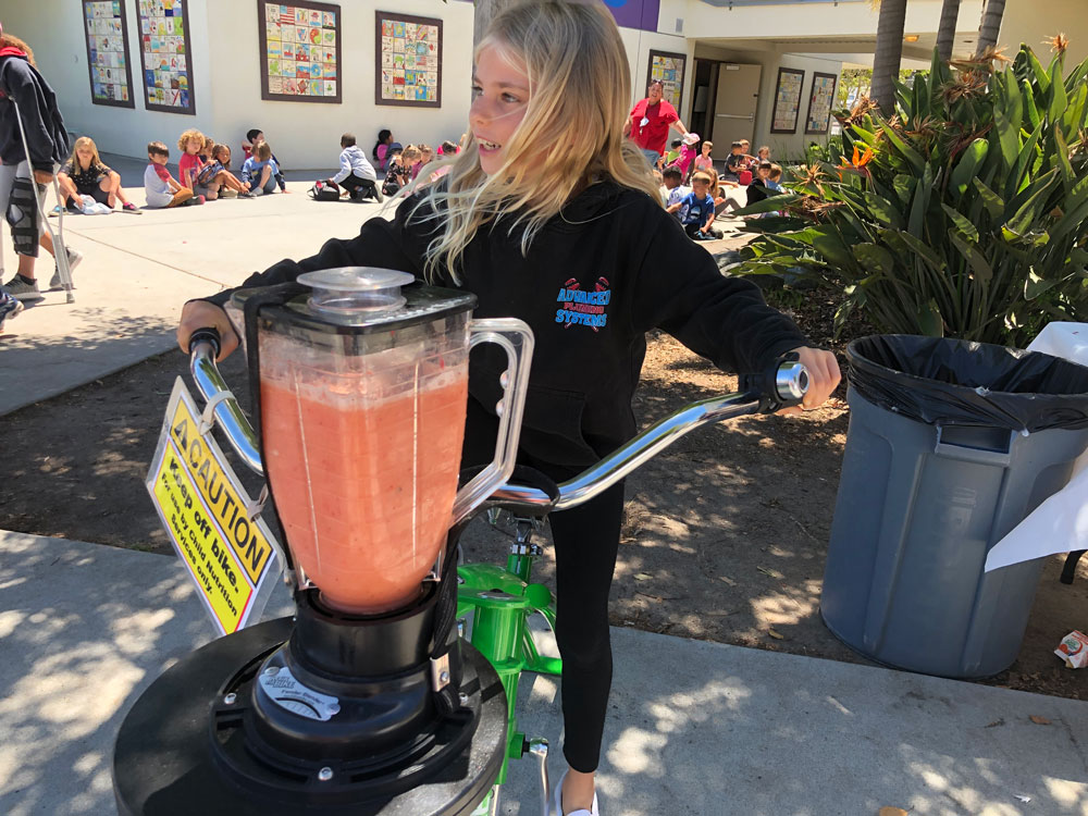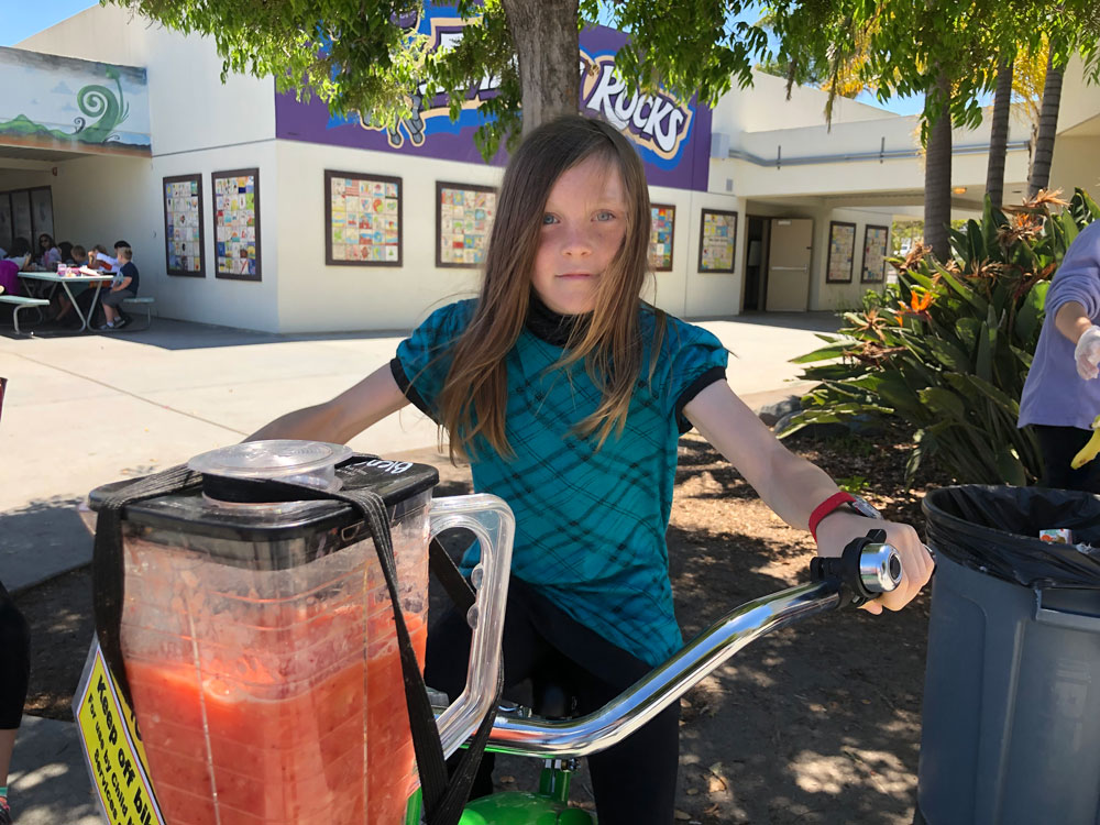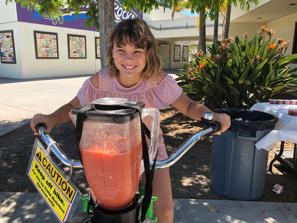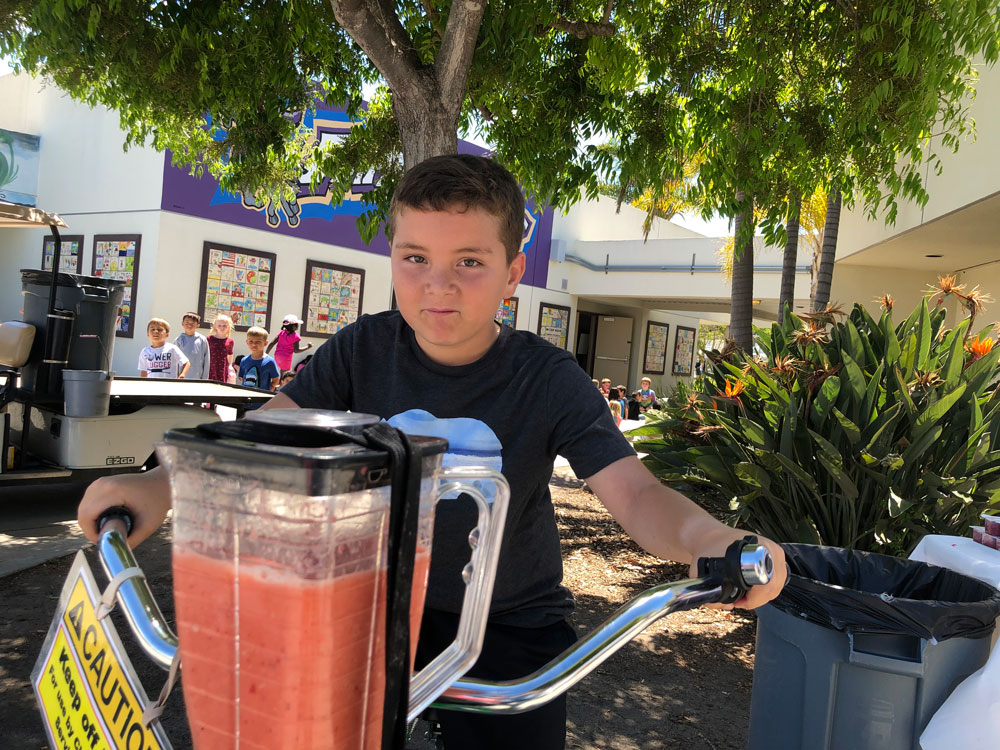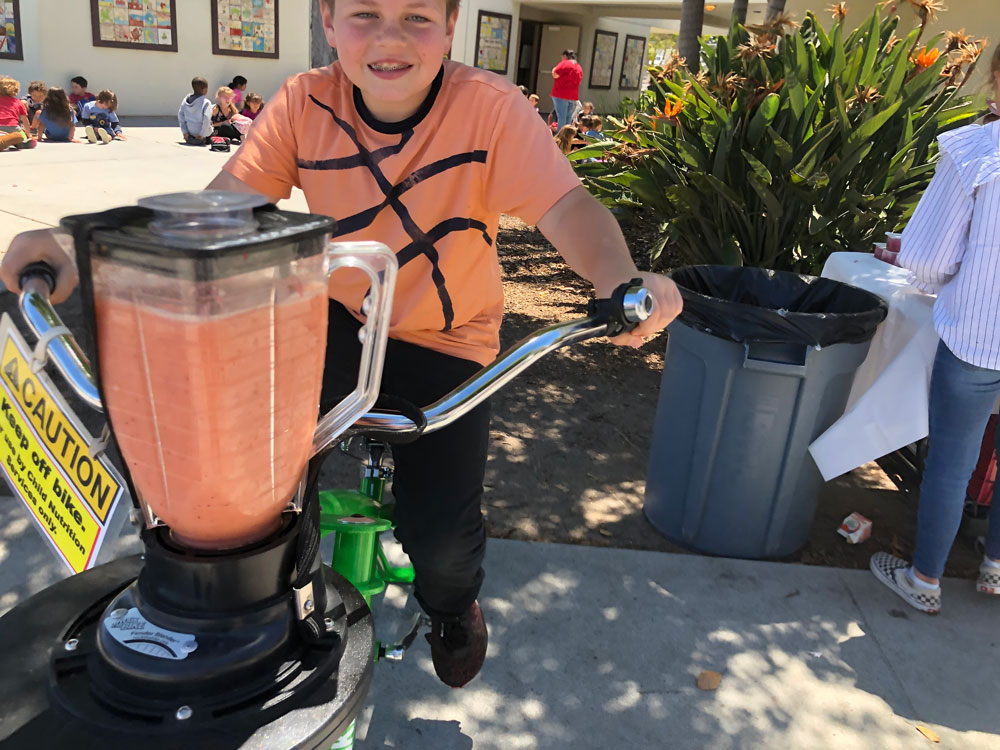 As Teacher Appreciation Week Kicked off, we brought the blender bikes for a smoothie celebration. Principal Dr. McKean started things off with the first ride of the day, and then the blending kicked in to high gear for the entire lunch period. Extra special thanks to our 5th grade volunteers who worked their hearts out to make the experience fun for everyone.