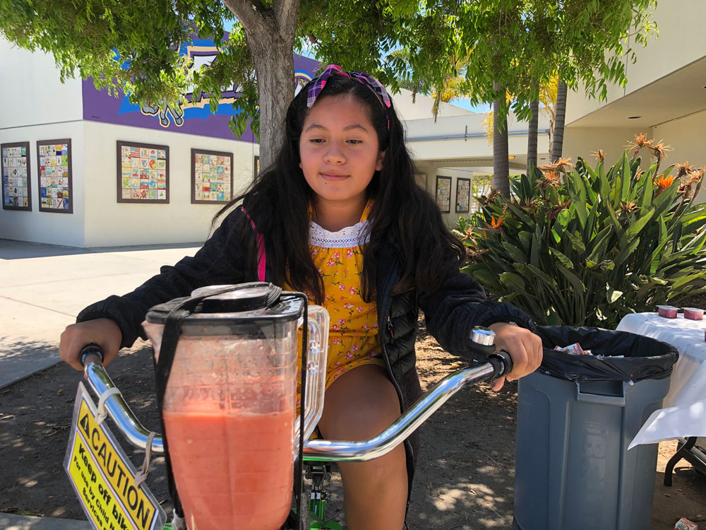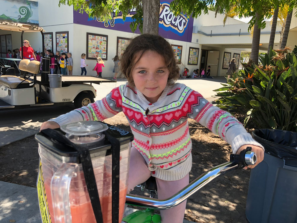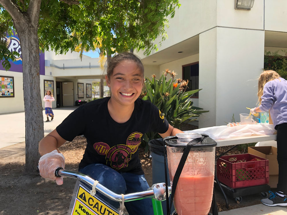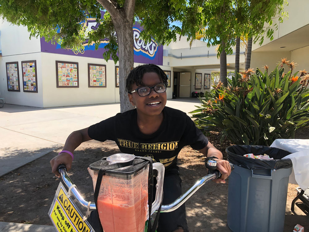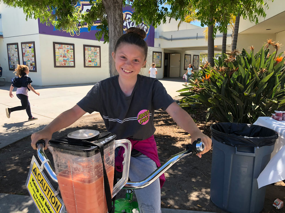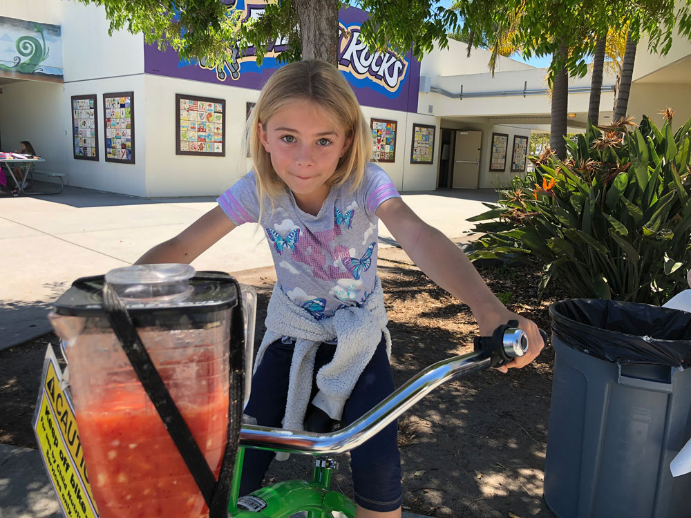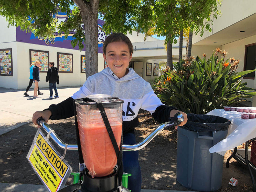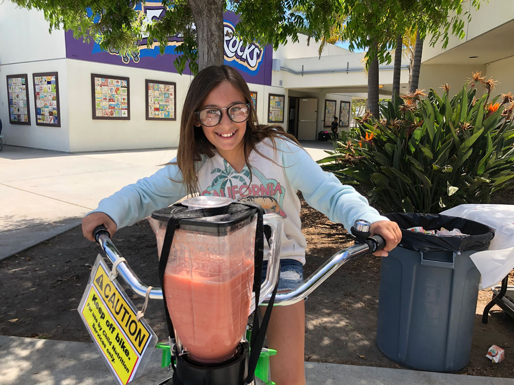 As Teacher Appreciation Week Kicked off, we brought the blender bikes for a smoothie celebration. Principal Dr. McKean started things off with the first ride of the day, and then the blending kicked in to high gear for the entire lunch period. Extra special thanks to our 5th grade volunteers who worked their hearts out to make the experience fun for everyone.