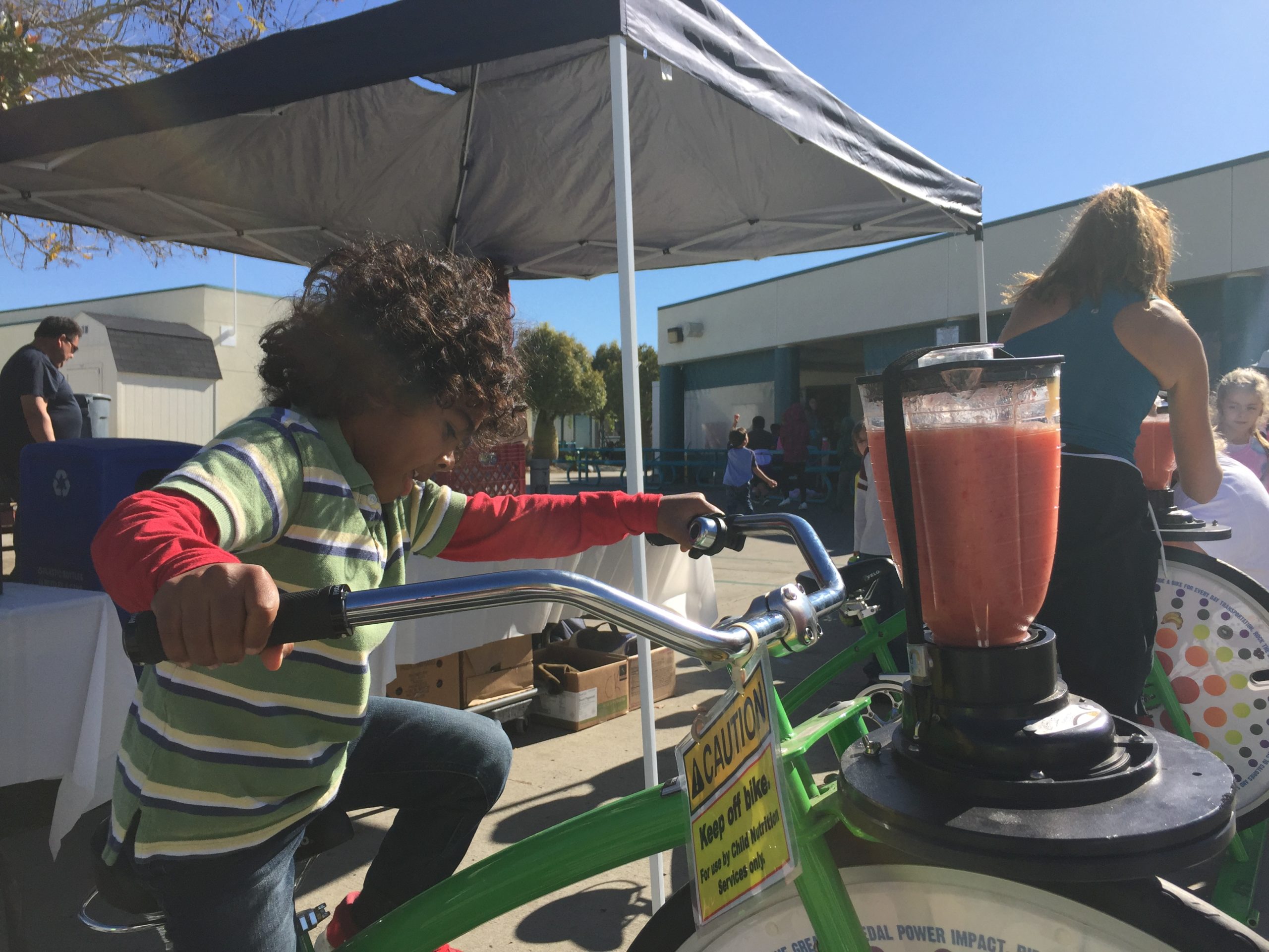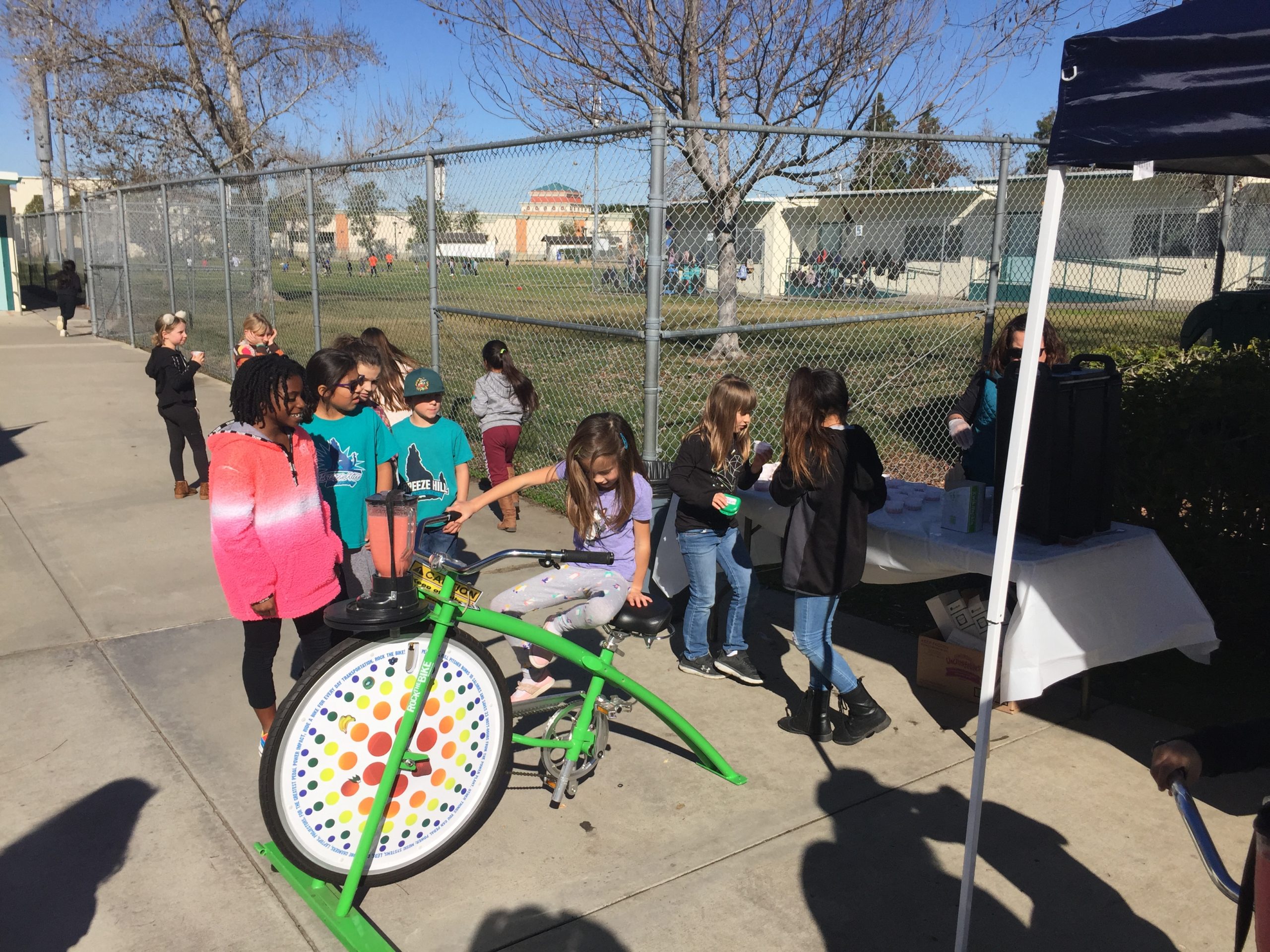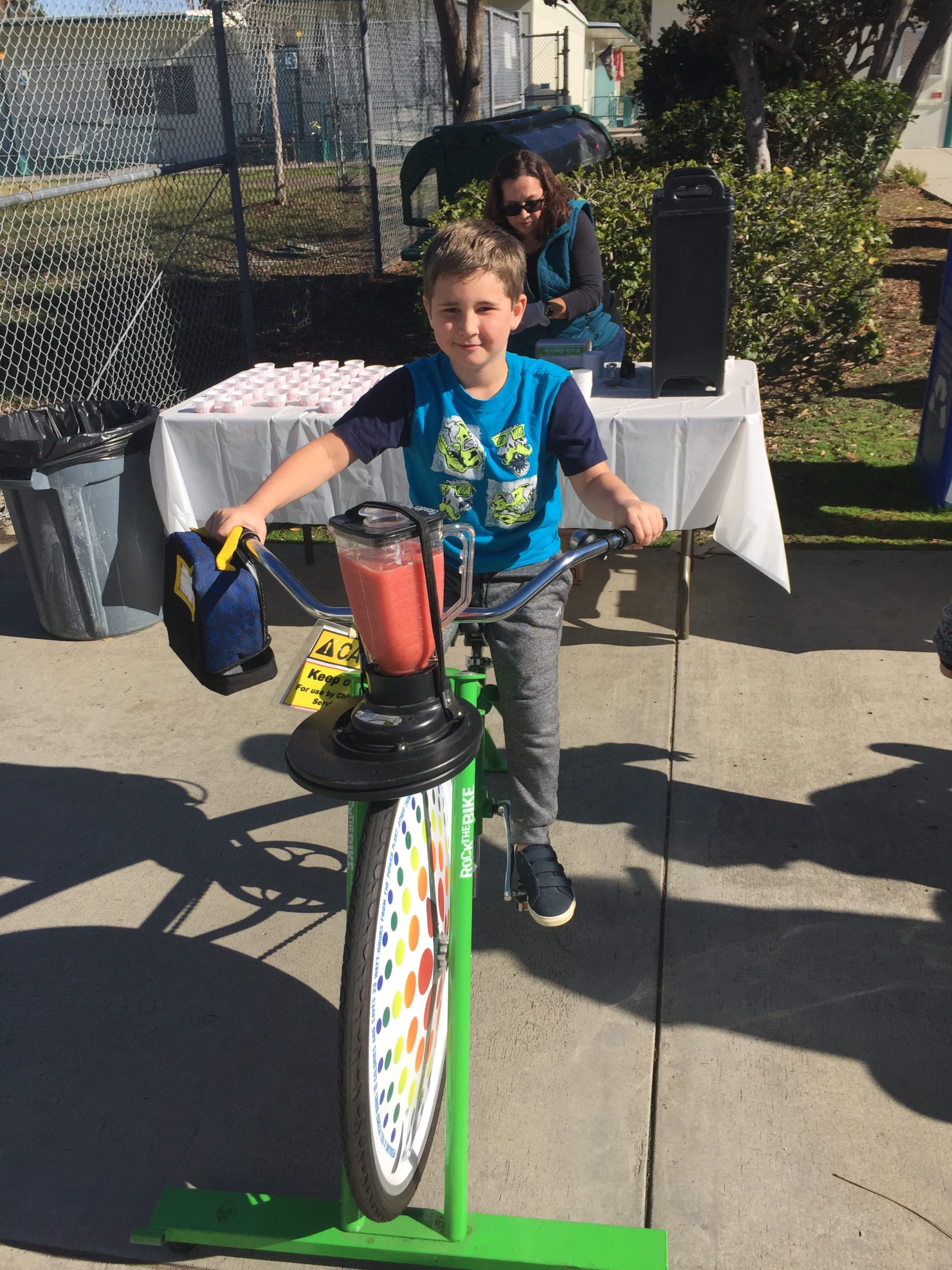 Students from TK all the way to 5th Grade took their turns riding the bikes which in turn created delicious and healthy drinks. VUSD’s WaveCrest Cafe provided frozen strawberries, apple juice, and yogurt for the students to blend. Everyone had a chance to hop on the blender bikes and then sample the product of their pedaling.