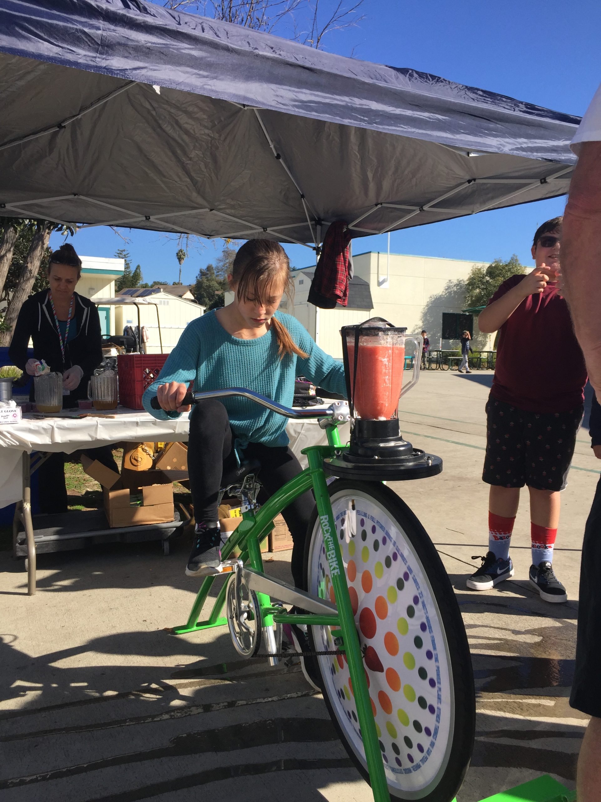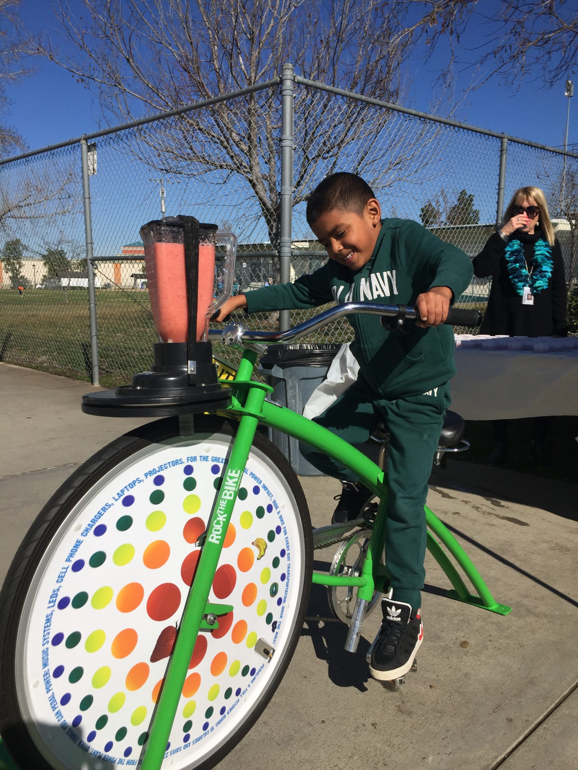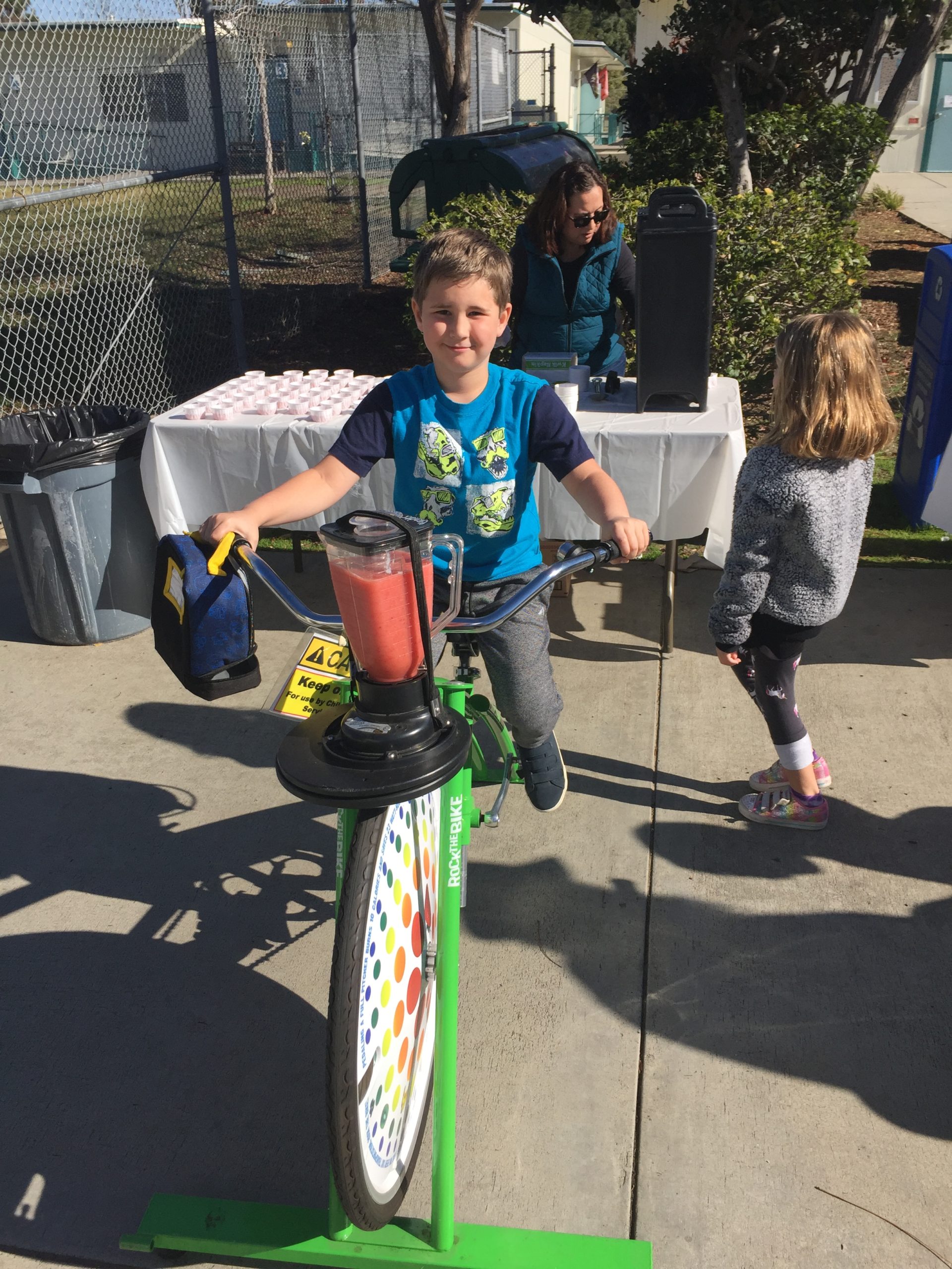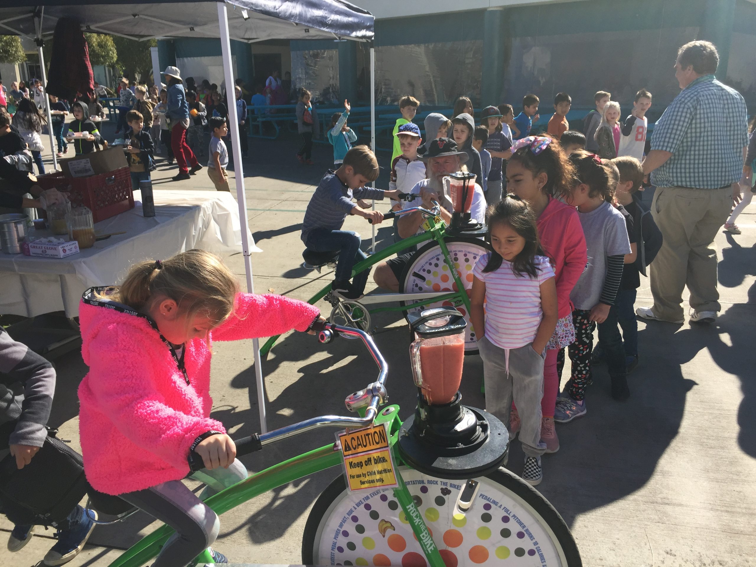 Students from TK all the way to 5th Grade took their turns riding the bikes which in turn created delicious and healthy drinks. VUSD’s WaveCrest Cafe provided frozen strawberries, apple juice, and yogurt for the students to blend. Everyone had a chance to hop on the blender bikes and then sample the product of their pedaling.
