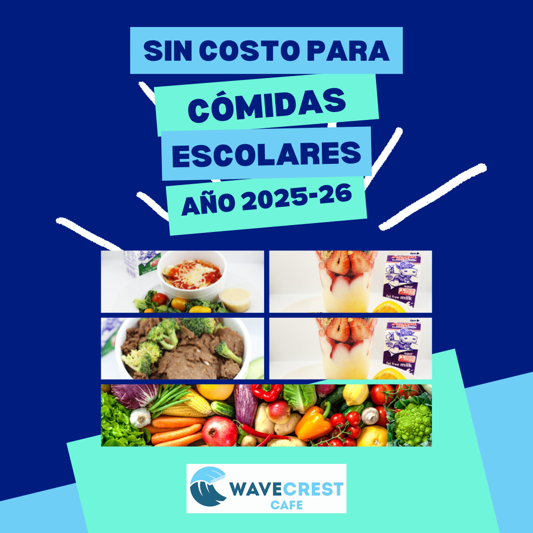 El WaveCrest Café también ofrece, con todas las comidas, frutas y verduras frescas de temporada, muchas de ellas provenientes de granjas locales de California. Nos enorgullece garantizar que todos los niños tengan acceso a frutas y verduras deliciosas y nutritivas todos los días.