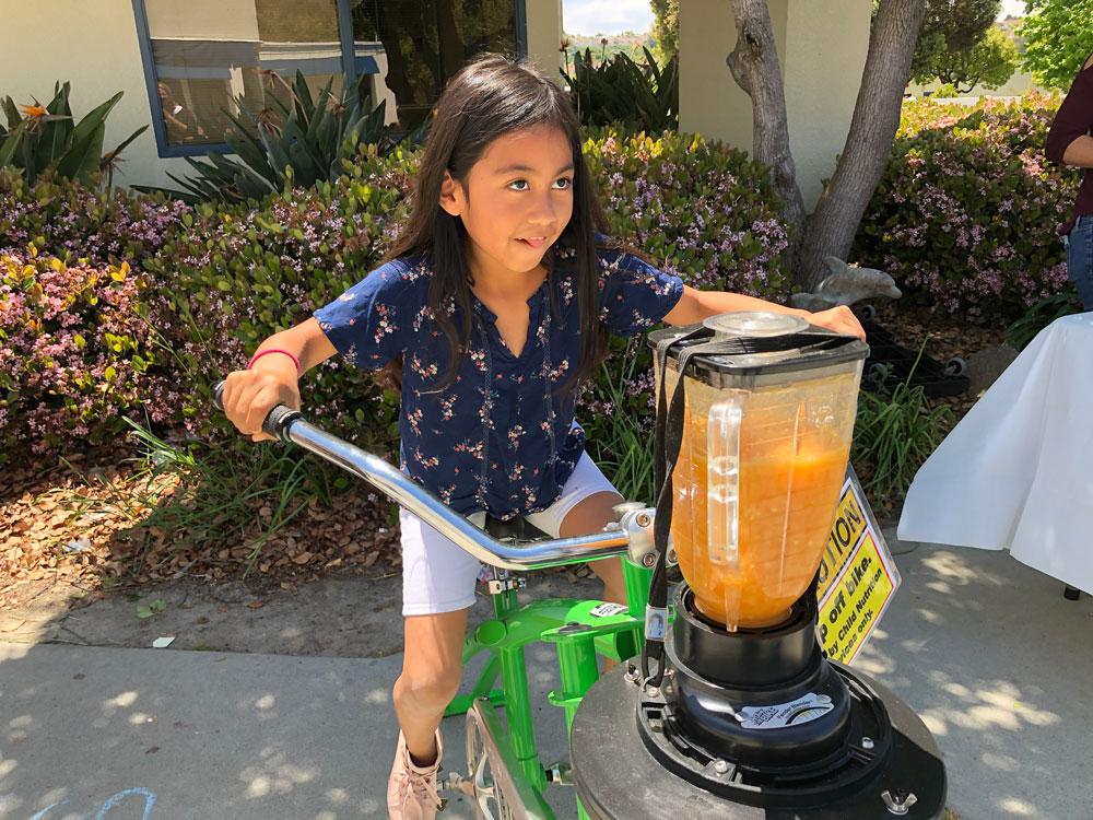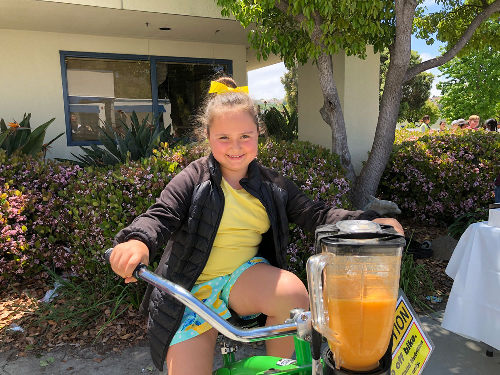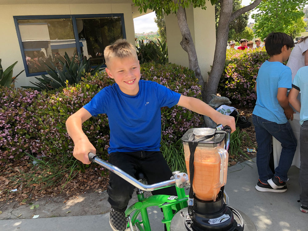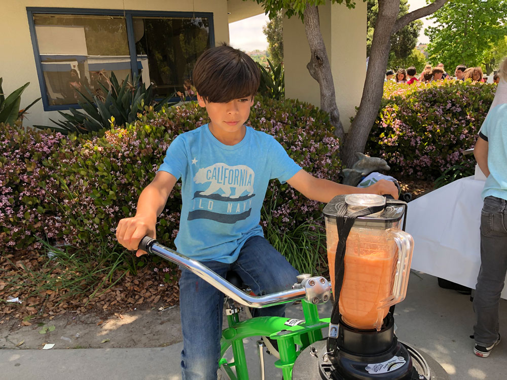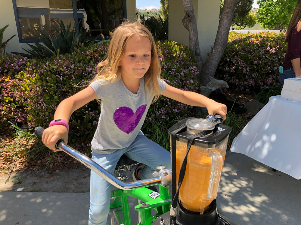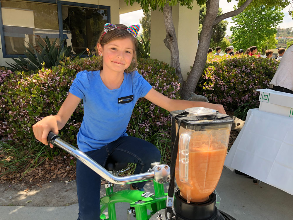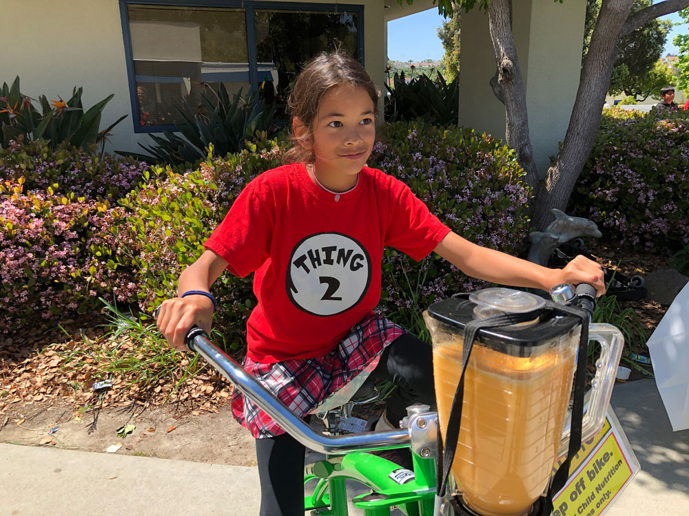 The Lake Dolphins concluded a week long celebration of healthiness and nutrition with a visit from the WaveCrest Cafe Blender Bikes on Friday, April 26th. Bikes were pedaled, fruit was blended and smoothies were made throughout the lunch periods at the school.
