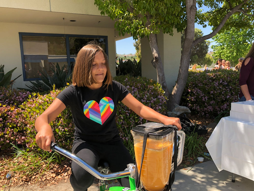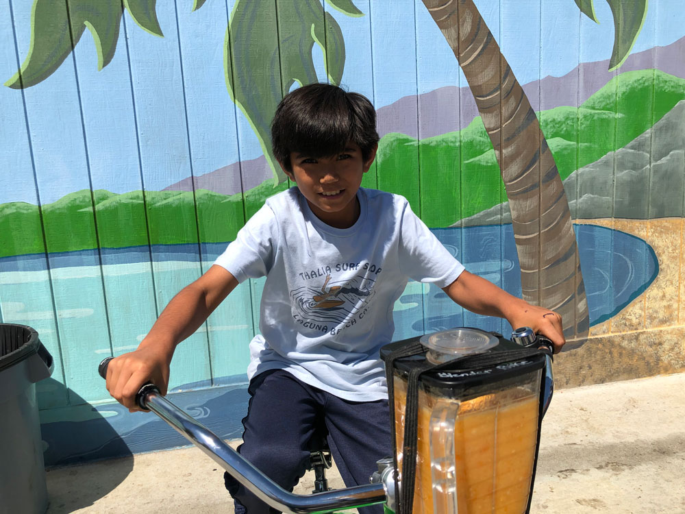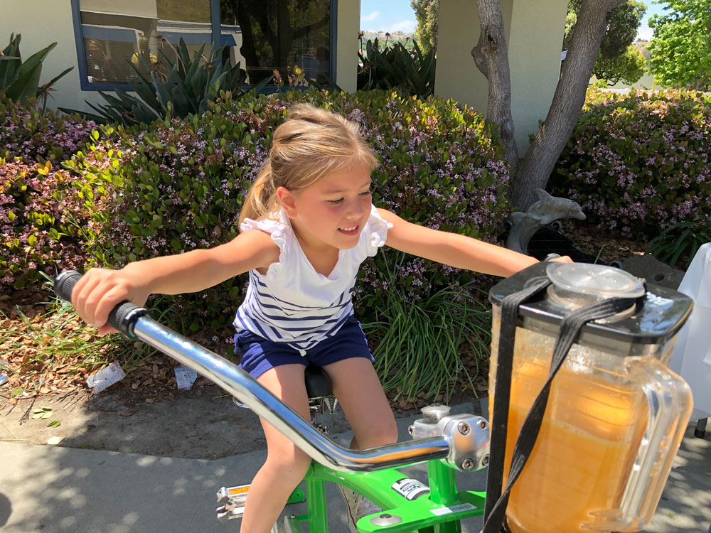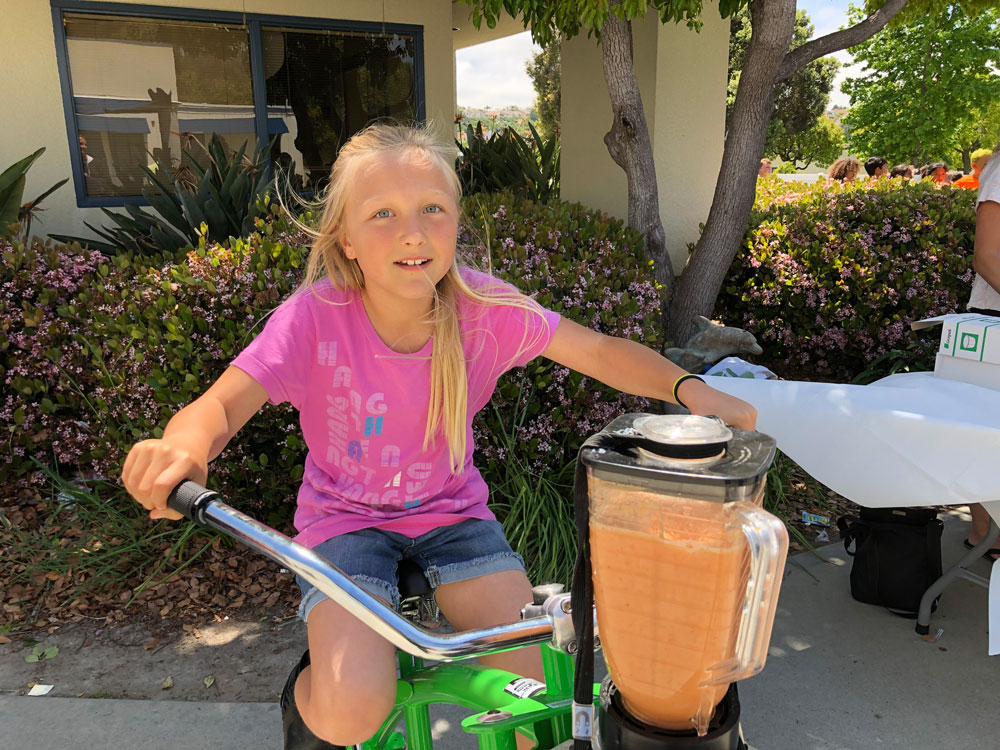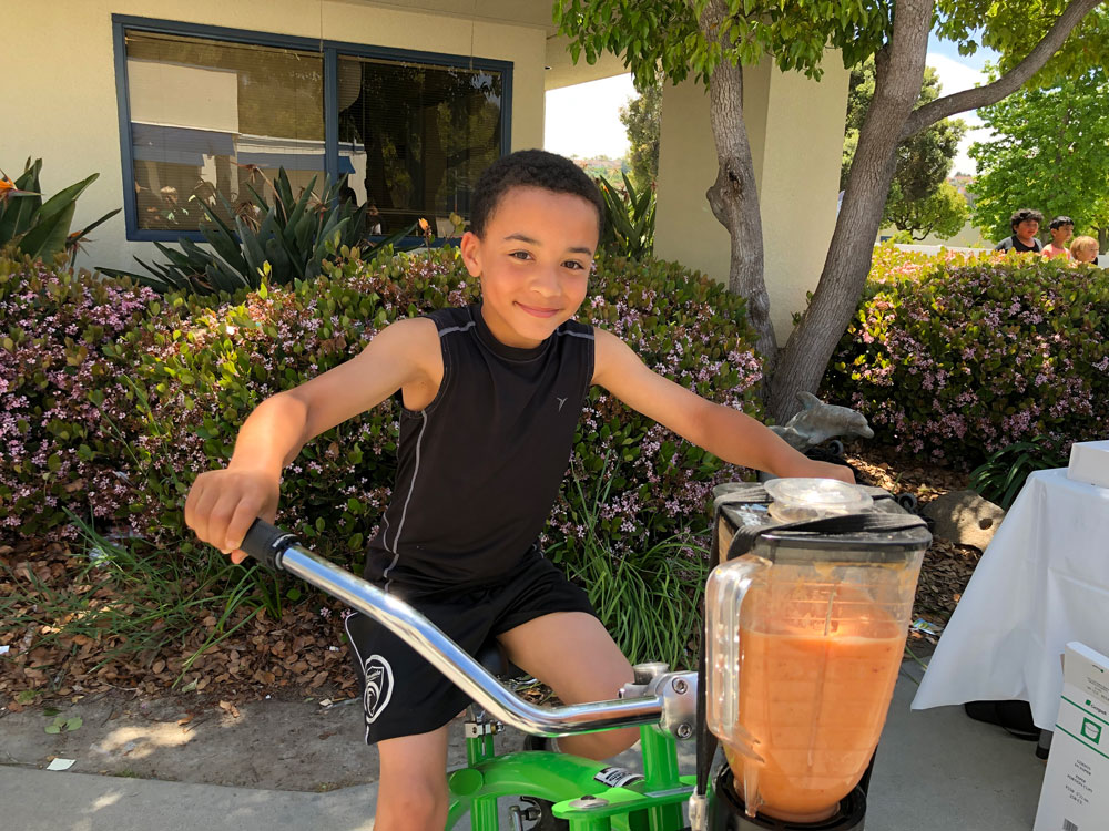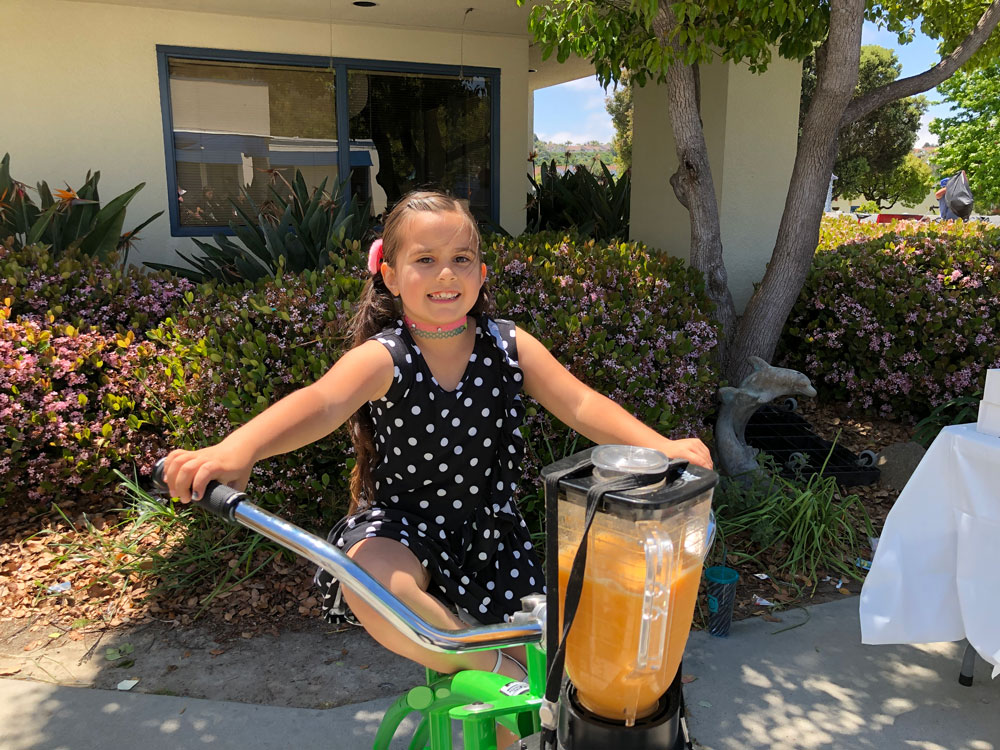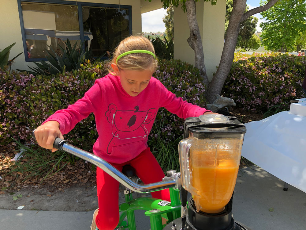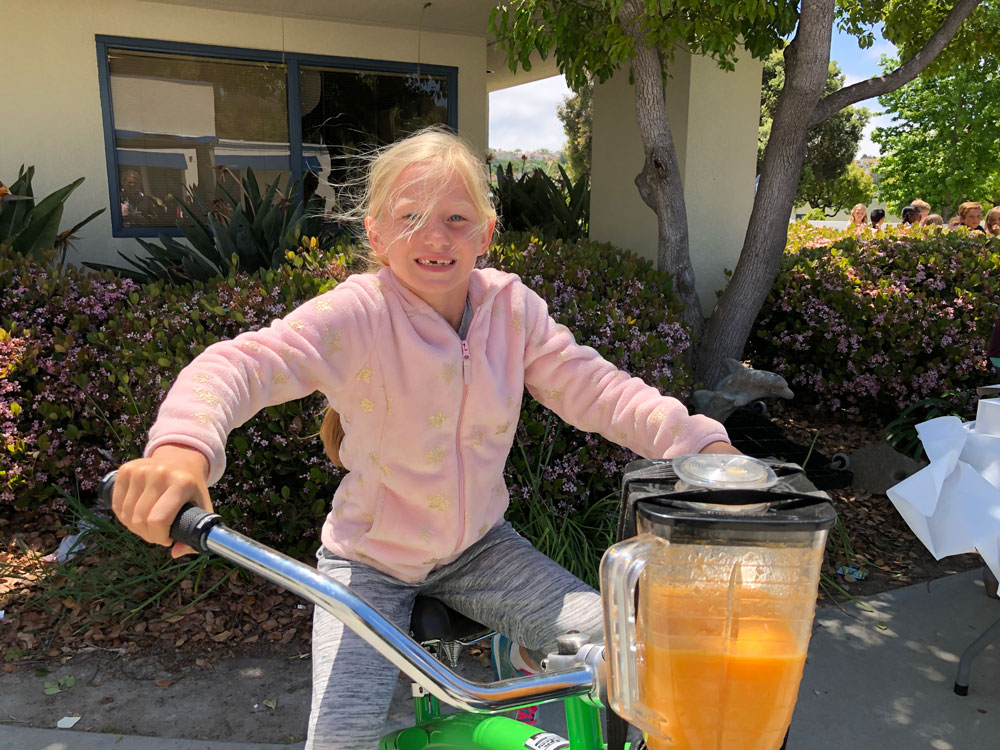 The Lake Dolphins concluded a week long celebration of healthiness and nutrition with a visit from the WaveCrest Cafe Blender Bikes on Friday, April 26th. Bikes were pedaled, fruit was blended and smoothies were made throughout the lunch periods at the school.