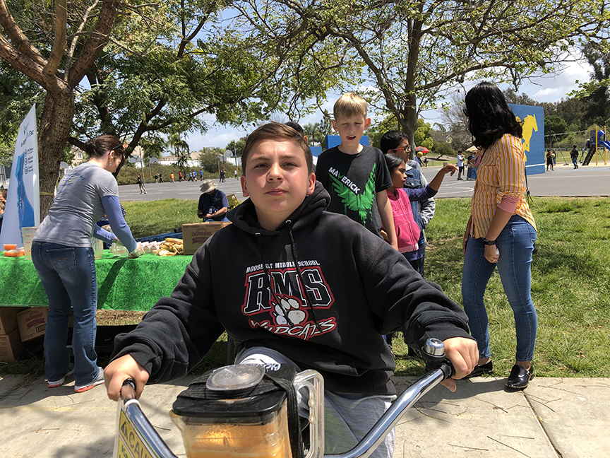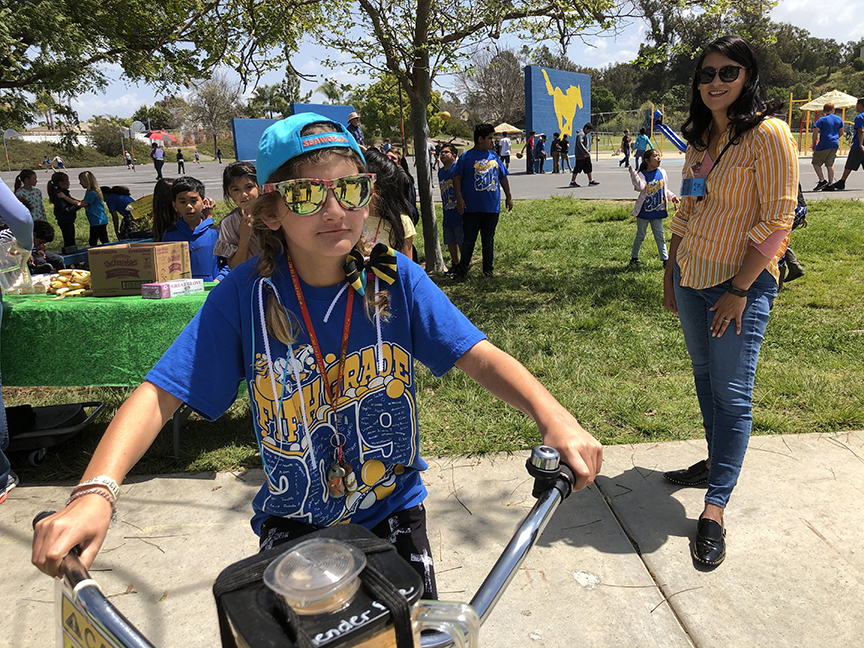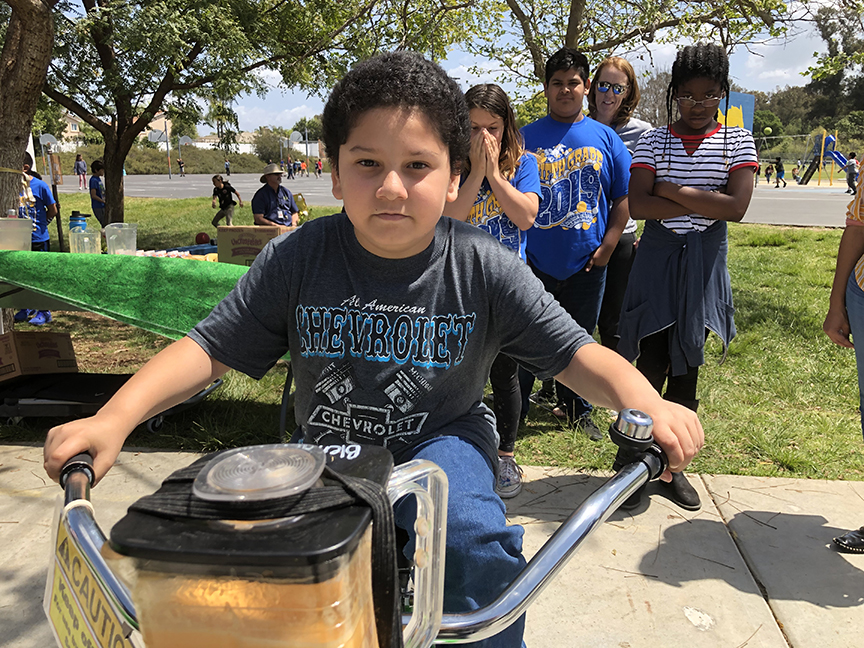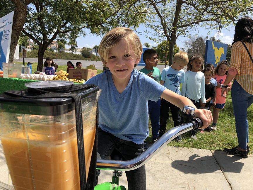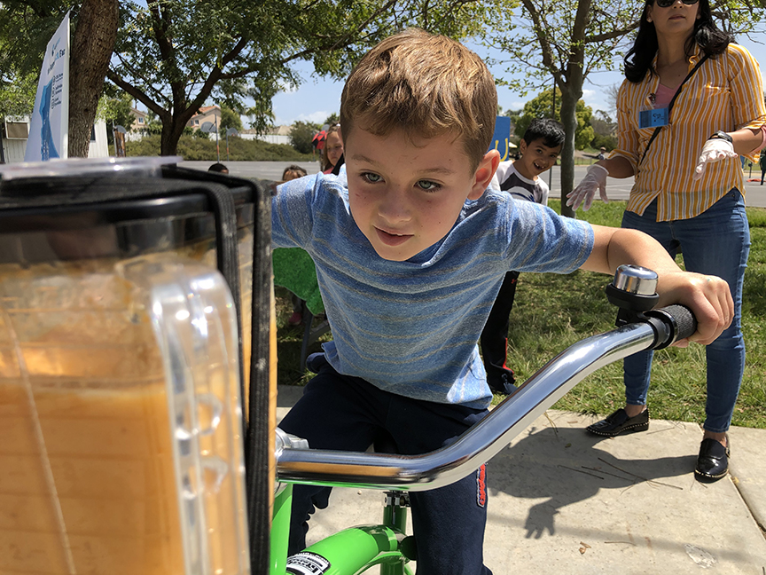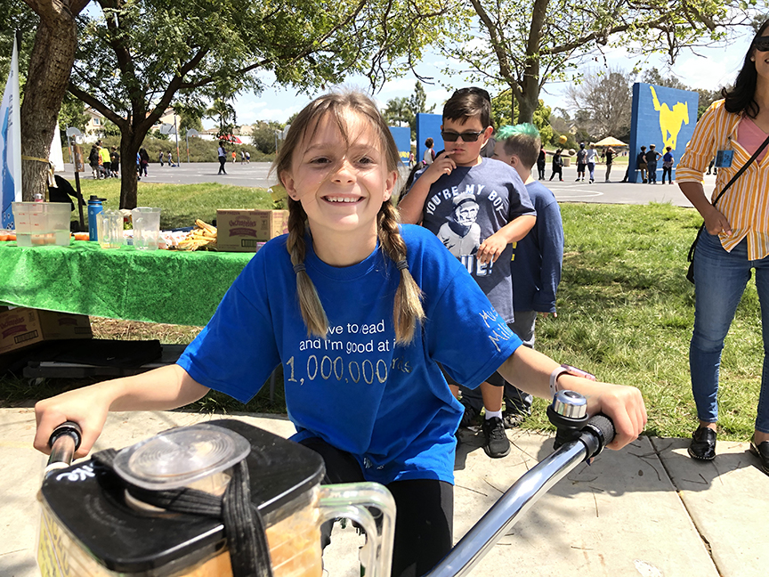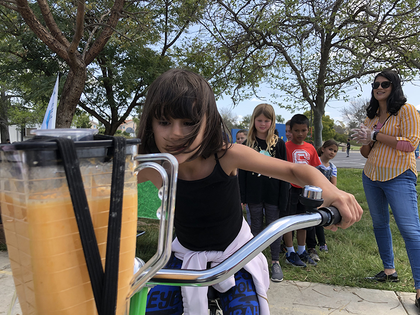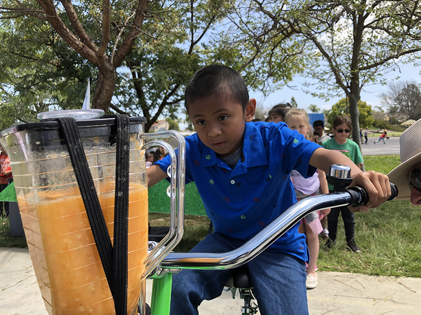 As always, the bikes served as a means of talking about the fresh, seasonal fruits and vegetables available daily at the school, including a bountiful salad bar that offers side items and toppings for meals. Principal Dr. Bill Porter kicked off the festivities with the first ride of the day, and PTA members volunteered for the event, making things run smoothly.