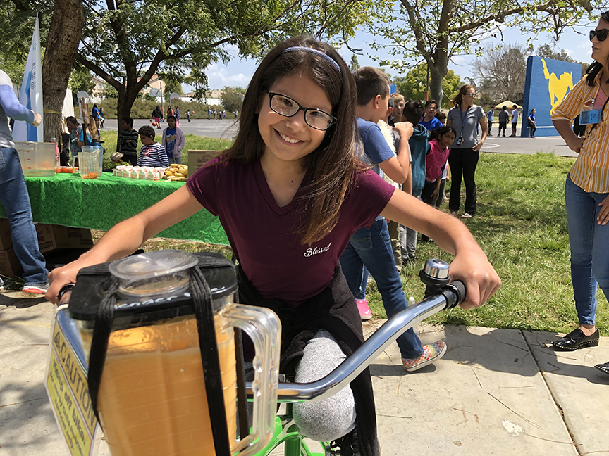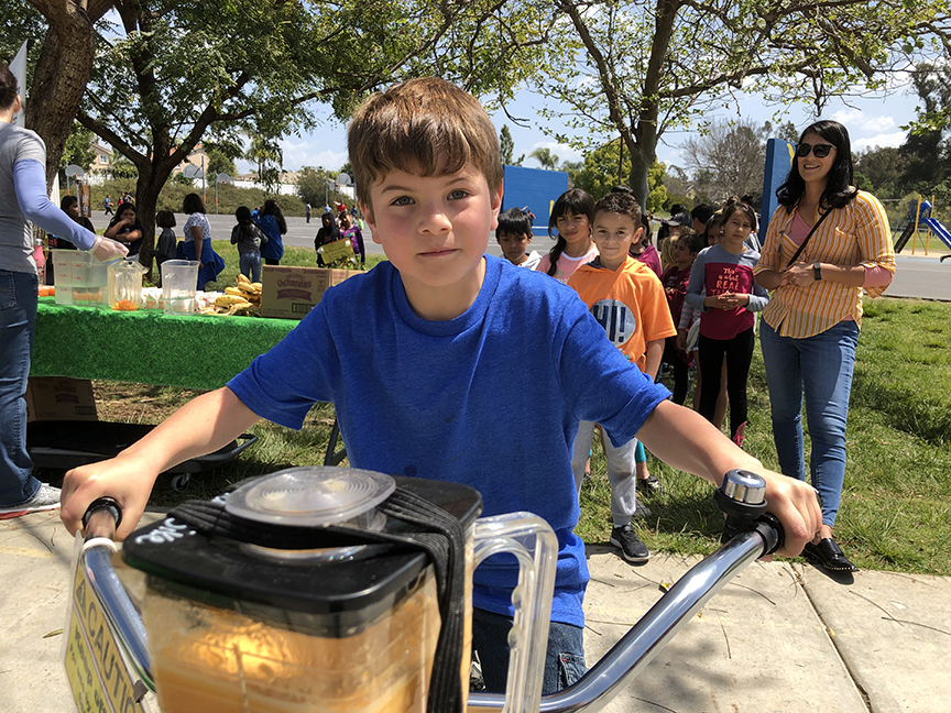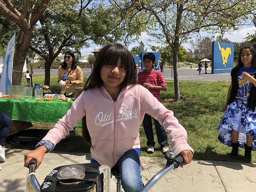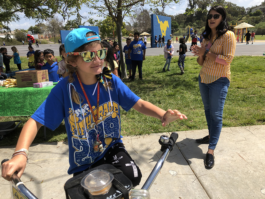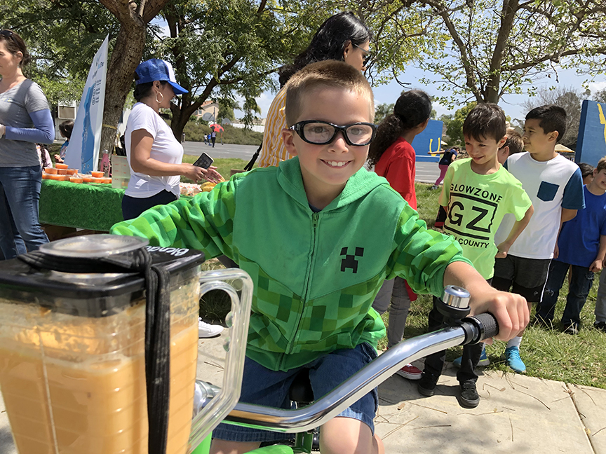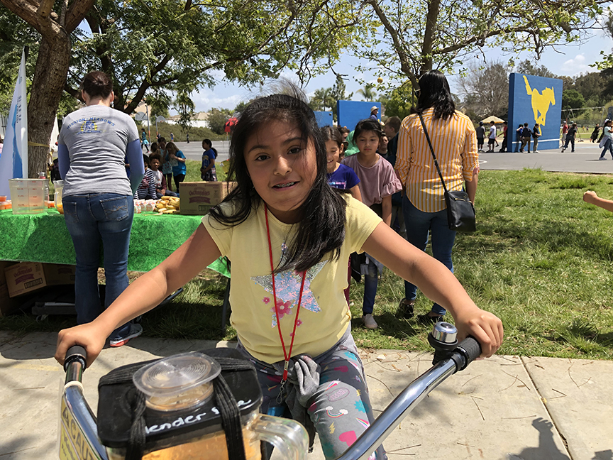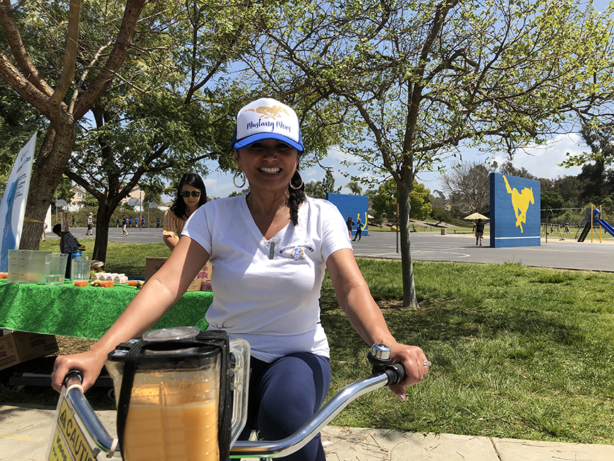 As always, the bikes served as a means of talking about the fresh, seasonal fruits and vegetables available daily at the school, including a bountiful salad bar that offers side items and toppings for meals. Principal Dr. Bill Porter kicked off the festivities with the first ride of the day, and PTA members volunteered for the event, making things run smoothly.